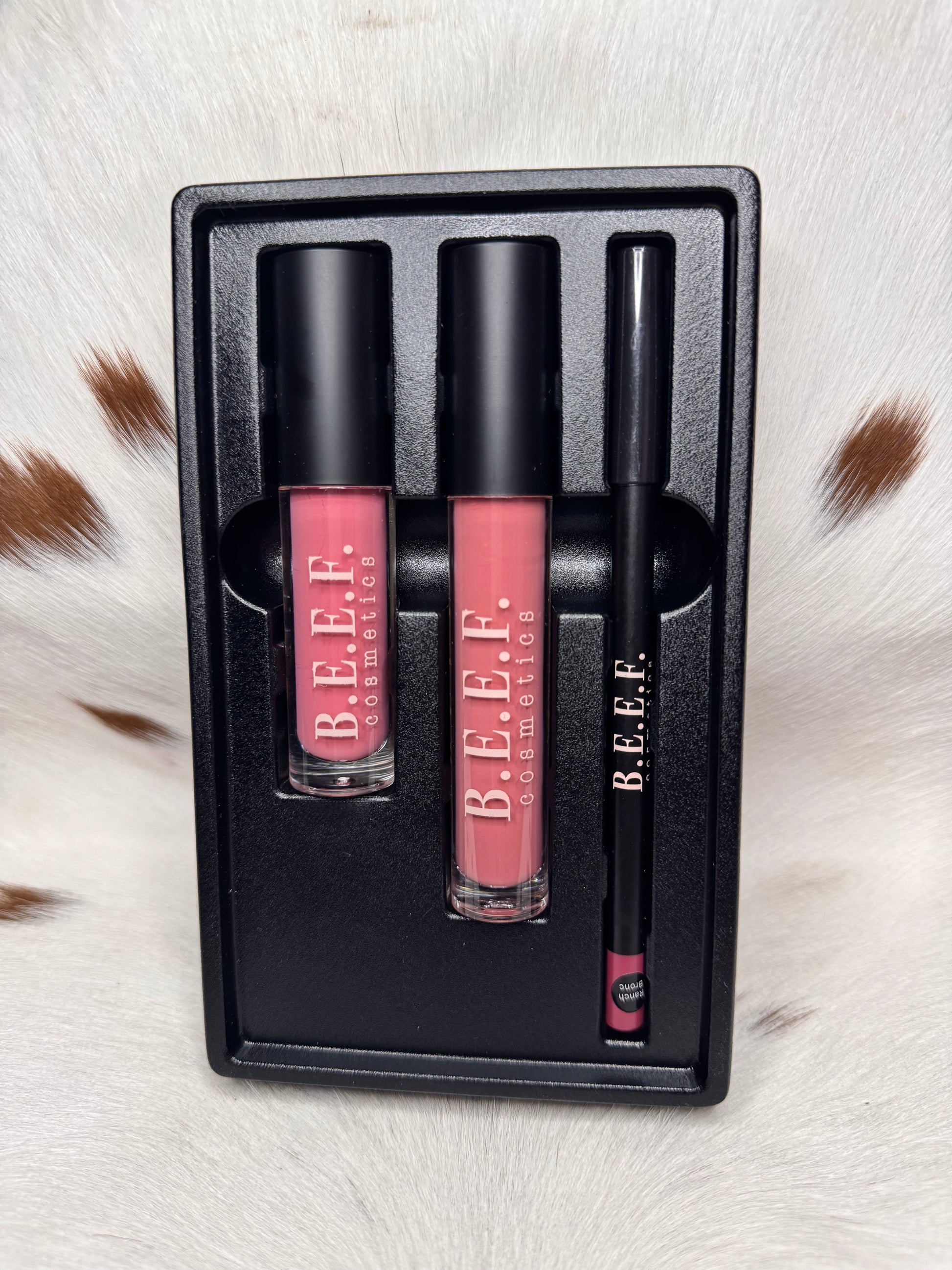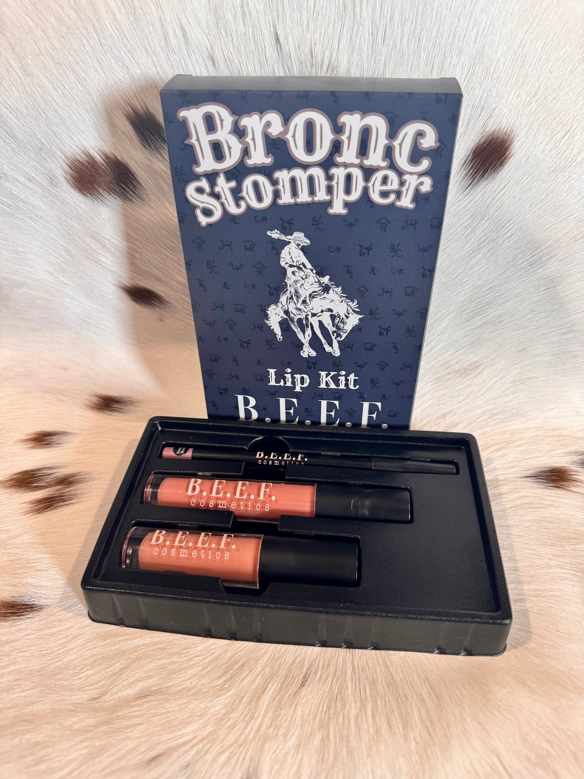 A lip kit worth packing around. This Bronc Stomper lip kit will be sure to make any cowgirl happy with a lip liner, lip gloss and a matte lip stain.